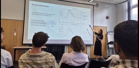 The symposium provided a wonderful opportunity to reconnect with two influential mentors—Duncan Faulkner and former undergraduate supervisor Andy Plater—whose guidance has been instrumental in Zoe’s academic journey. She was also grateful for the chance to present her latest research on the strategic placement of leaky barriers, contributing to the growing body of work on nature-based solutions for flood resilience.